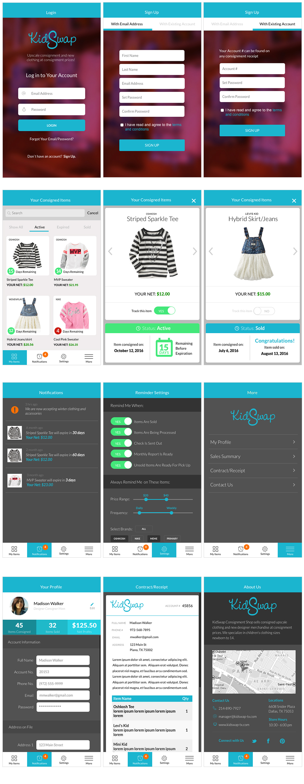 KidSwap mobile app is a consignment store app to remind customers to pickup their items once the listing expires.