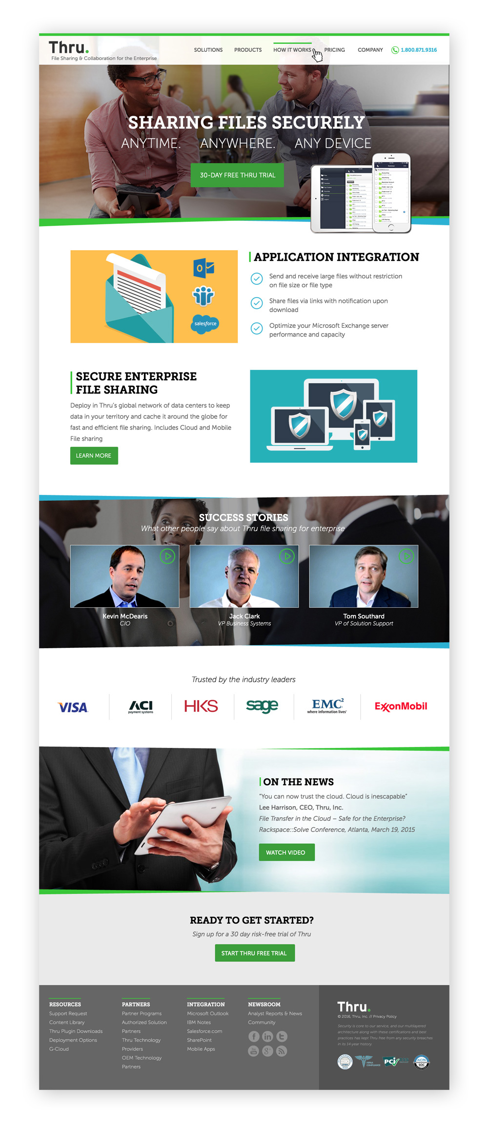 Homepage design for Thru, a file compression company in Dallas, TX who wants to get a homepage facelift to be more modern and tech oriented.